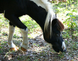 På barnridningstillfällen kan små barn komma och sitta till häst under en skrittur i skogen.